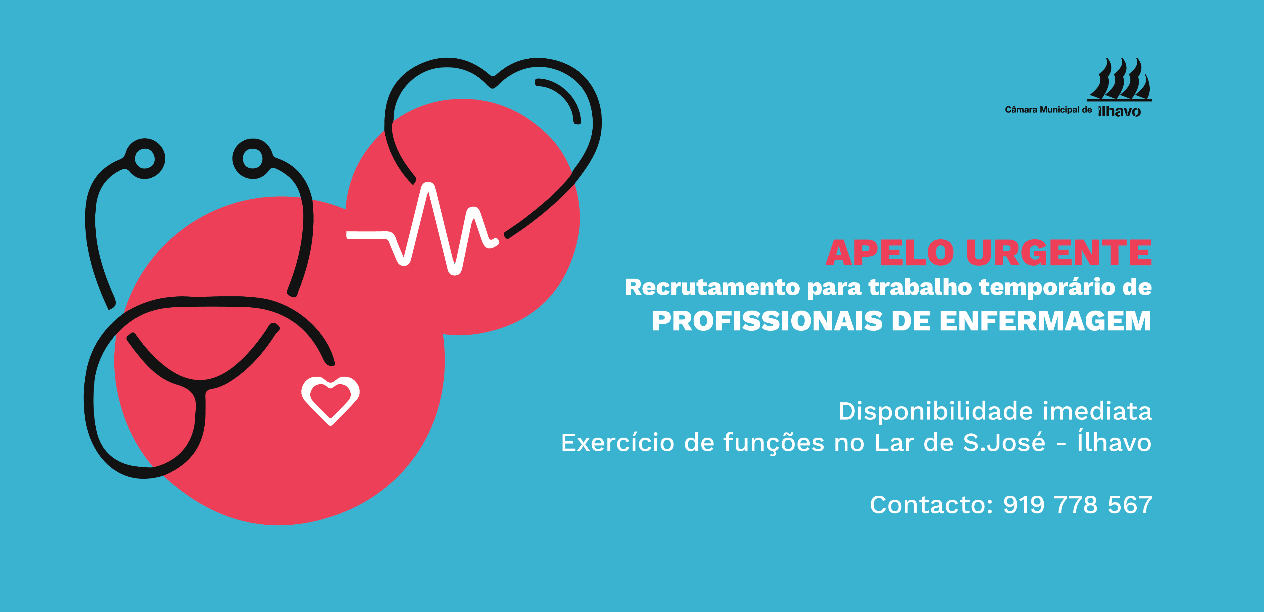 Face à delicada situação que o Lar S. José vive atualmente, fruto do surto da COVID-19, a Câmara Municipal de Ílhavo faz um apelo urgente aos Profissionais de Enfermagem com disponibilidade imediata para que nos contactem pelo n.º 919 778 567 a fim de prestarem serviço remunerado naquela instituição.