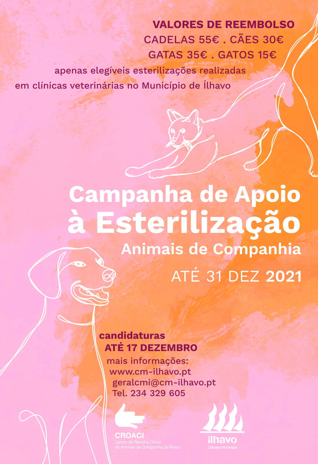 área de conteúdos (não partilhada)A Câmara Municipal de Ílhavo promove, novamente, o Programa de Apoio à Esterilização Animal, que decorrerá até 31 de dezembro, aplicável aos animais de companhia (cães e gatos) cujos proprietários residam no Município de Ílhavo.
