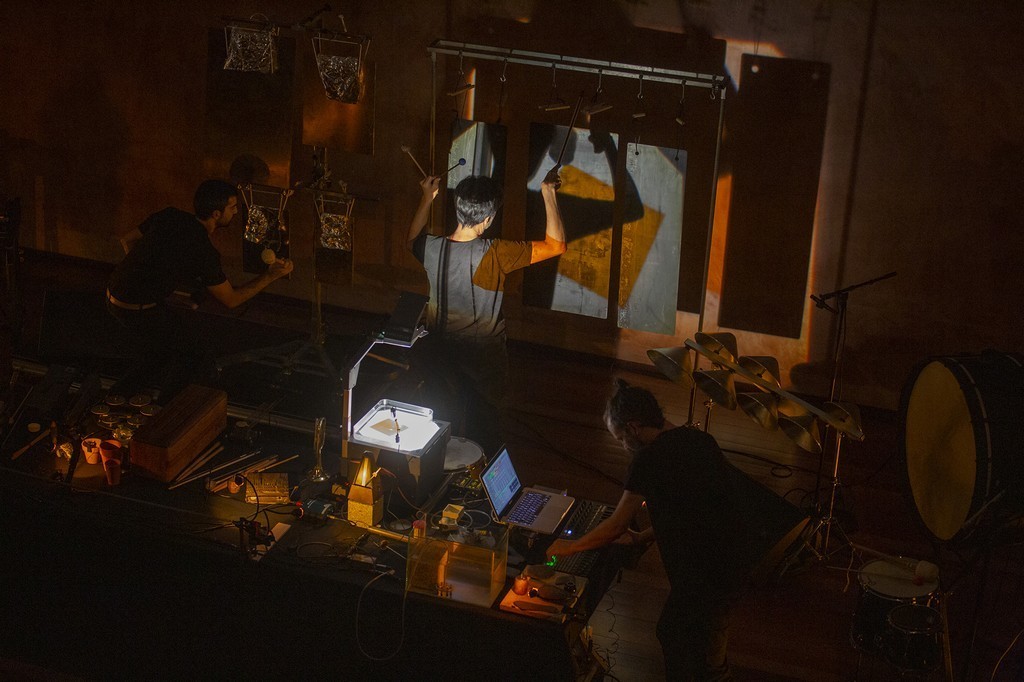 No espetáculo “Gestos Invisíveis”, o som mexe, é gesticulado, tendo um impacto mais que sonoro. Partindo da invisibilidade do gesto eletrónico como elemento de exploração musical e cénica, este é um exercício que une Gustavo Santos, da Sonoscopia, a João Dias e Miquel Bernat do Drumming GP. Nesta peça, com o apoio da Orquestra de Jazz de Matosinhos, cruzam-se perspetivas musicais que têm como ponto comum a experimentação e que renovam as linguagens das vanguardas musicais, dando origem a um novo lugar em que a música não é, necessariamente, apenas, ouvida. Que gestos são os dos sons? Como os sentimos e percebemos?