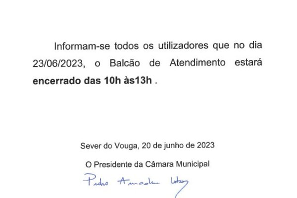 23 JunhoAVISO - Balcão de Atendimento