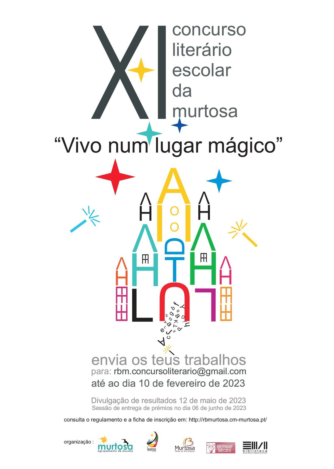 O XI Concurso Literário Escolar da Murtosa tem como tema “Vivo num lugar mágico” e destina-se a premiar trabalhos, nas modalidades de prosa e poesia, de alunos do concelho da Murtosa, fomentando, dessa forma, os hábitos de leitura e escrita nas camadas jovens e envolvendo a comunidade escolar numa atividade cultural.
