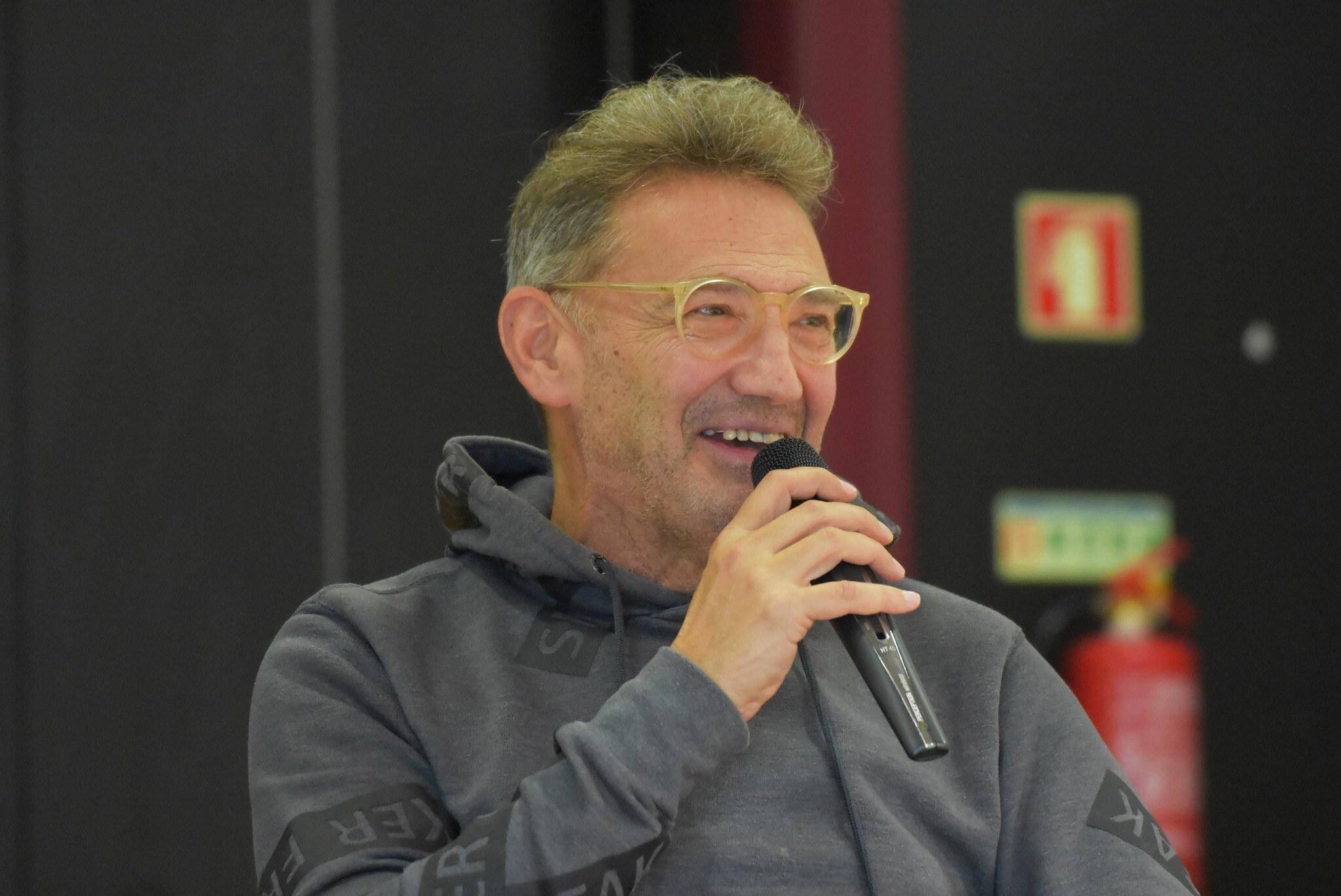 A voz dos míticos Jafumega e atual programador cultural do Município de Estarreja falou sobre o seu percurso artístico e pessoal, numa conversa moderada pelo músico Miguel P. e pelo Vice-Presidente da Câmara Municipal, Januário Cunha.