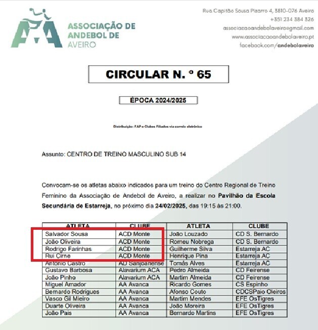 ATLETAS DA ASSOCIAÇÃO CULTURAL E DESPORTIVA DO MONTE CHAMADOS ÀS SELEÇÕES REGIONAIS