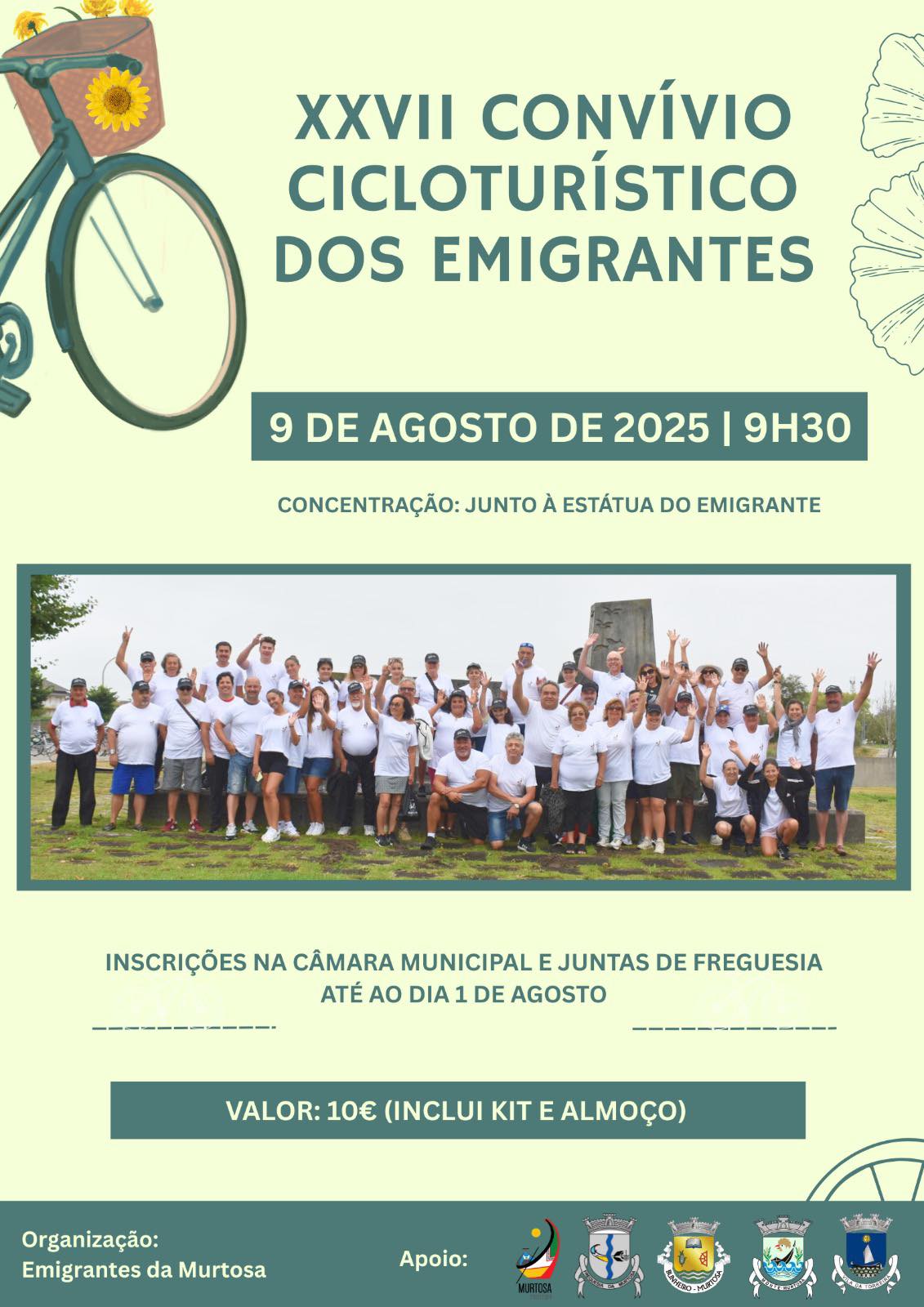 Inserido na programação da Festa do Emigrante, no próximo dia 9 de agosto, pelas 9h30 haverá o XXVII Convívio dos Emigrantes, uma iniciativa com grande tradição na nossa Terra, organizado por um grupo de emigrantes Murtoseiros, com o apoio da Câmara Municipal da Murtosa e das Juntas de Freguesia do Concelho.
