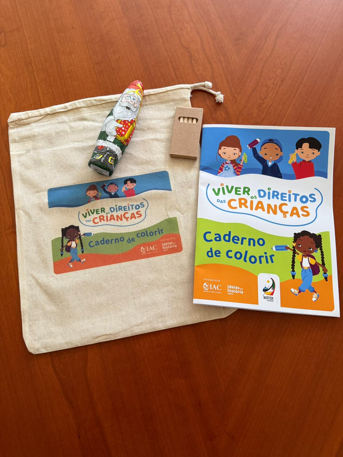 A lembrança incluiu um saco institucional, um chocolate, lápis de cor e o livro de colorir “Viver os Direitos das Crianças”, promovendo junto dos mais novos valores fundamentais como a cidadania, o respeito e a valorização dos direitos das crianças.