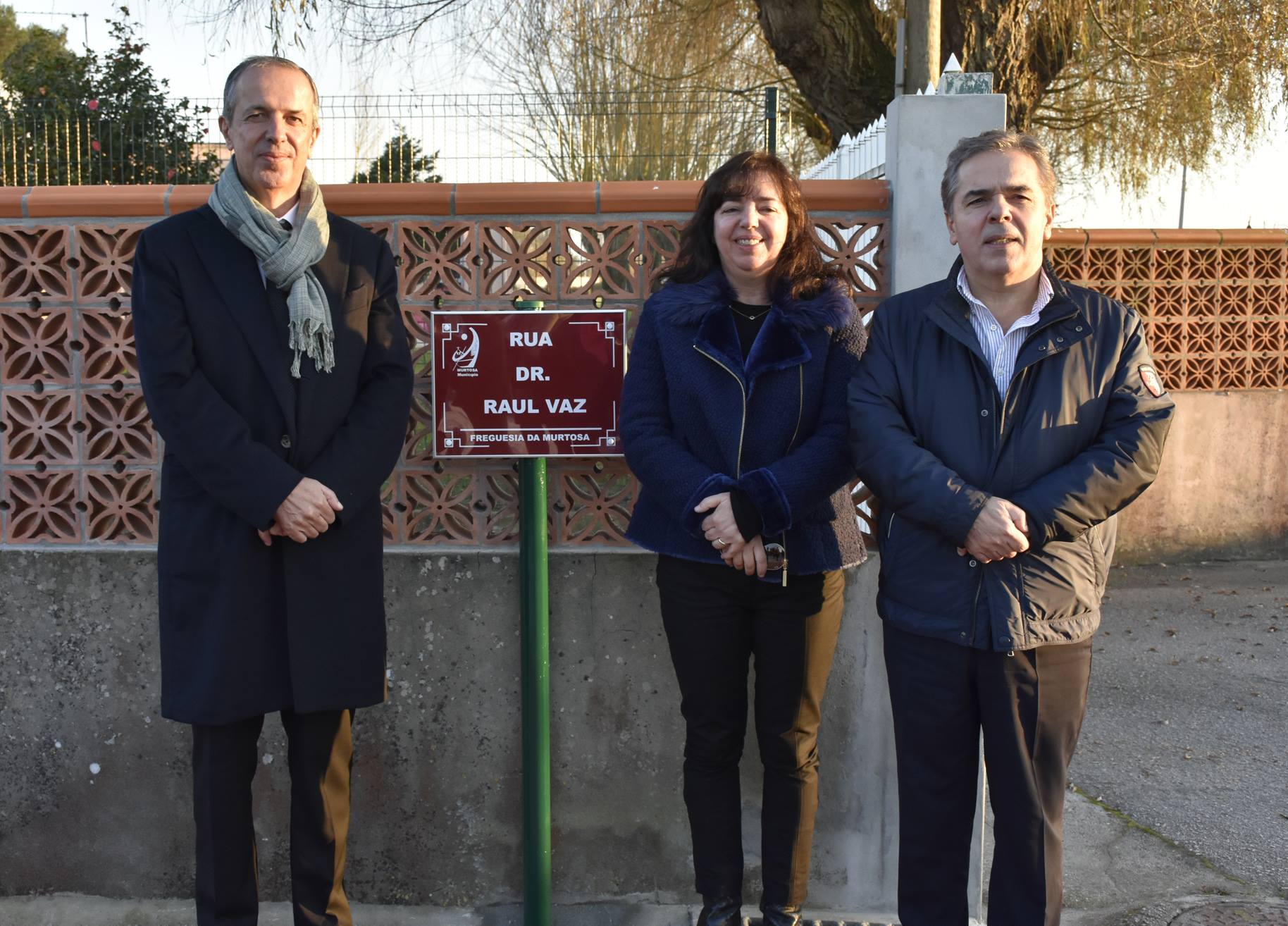 De seguida, os filhos do homenageado, Raul, Carlos e Laura Vaz, acompanhados pelo Presidente da Câmara, Joaquim Baptista fizeram o descerramento símbolico da placa toponímica que perpetua o nome do Dr. Raul Vaz no arruamento de interligação da Avenida do Emigrante à Rua União Beneficente Murtoense.