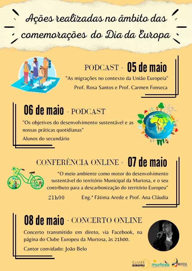As comemorações culminam em grande no próximo sábado, dia 8 de maio de 2021, pelas 21h00, com um concerto "online" do afamado Cantor João Belo, a transmissão será assegurada pela página do Clube Europeu da Murtosa.