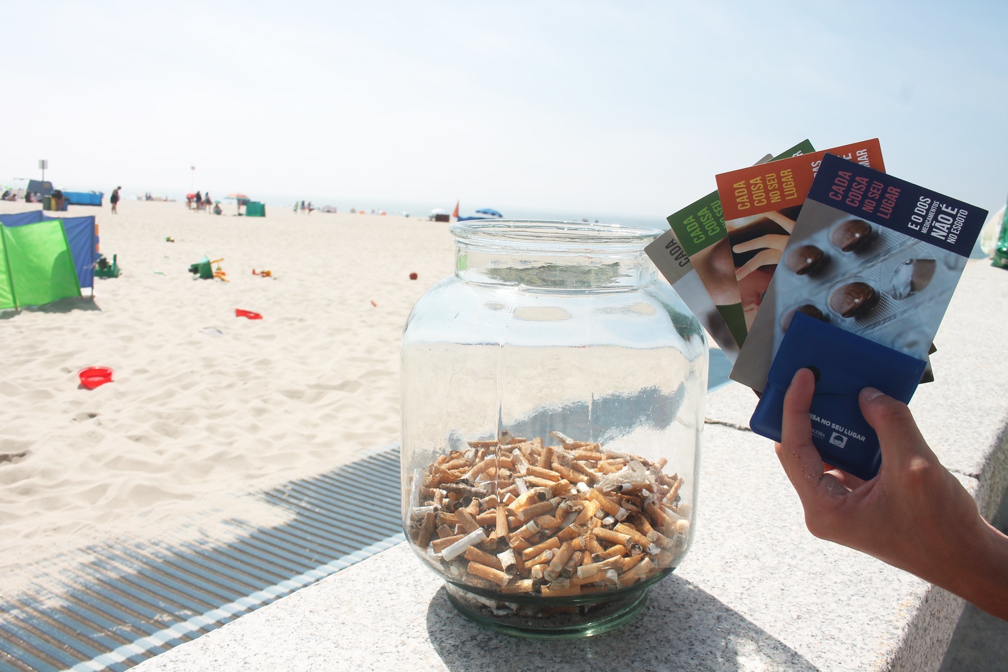 Grupos de crianças, devidamente equipados, recolheram beatas no areal e distribuíram "porta-beatas" e panfletos aos veraneantes.