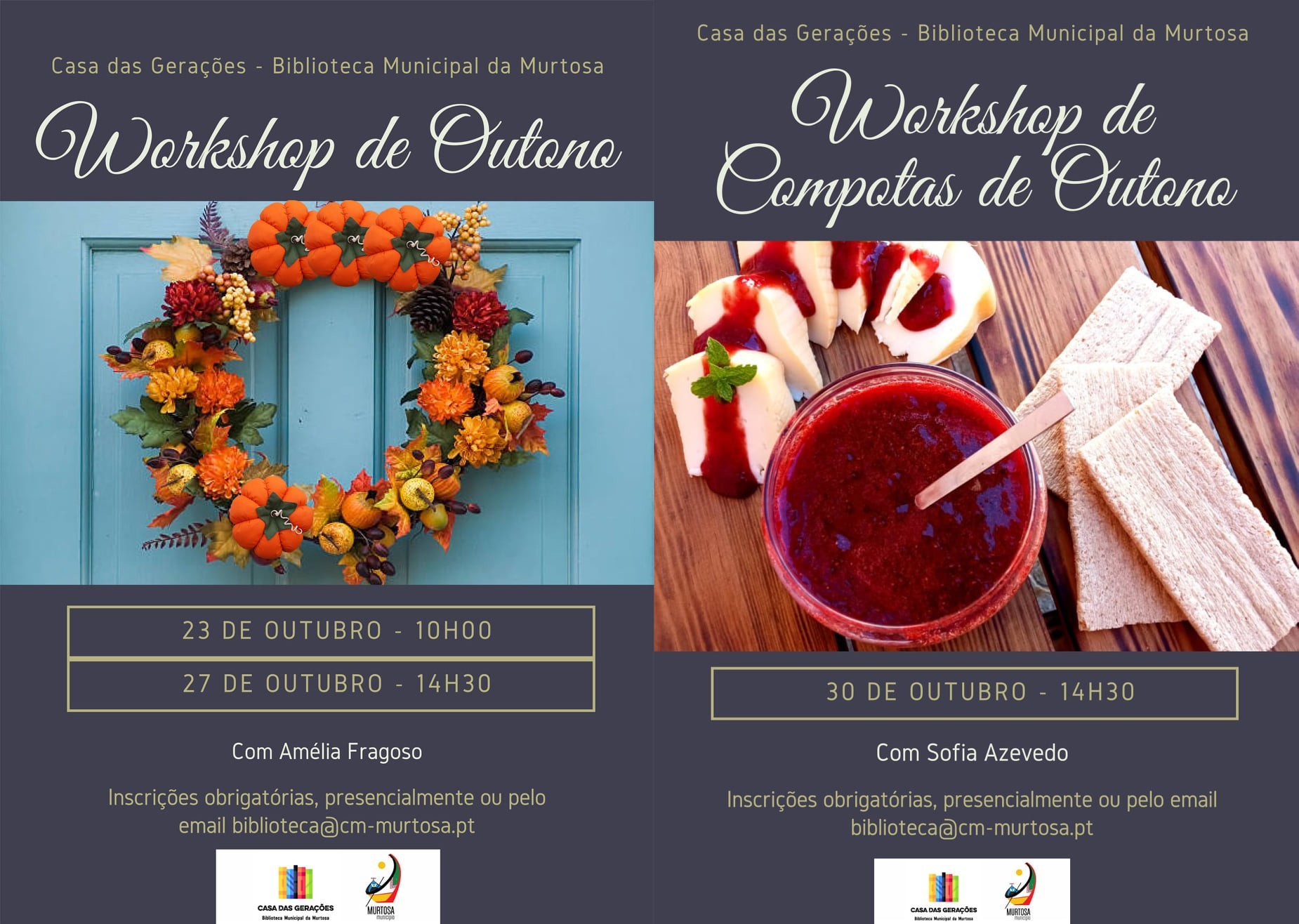 As manualidades de Maria Amélia Fragoso e as compotas de Sofia Azevedo são as propostas de workshops de outono, que marcam o regresso destas iniciativas à Casa das Gerações - Biblioteca Municipal da Murtosa.