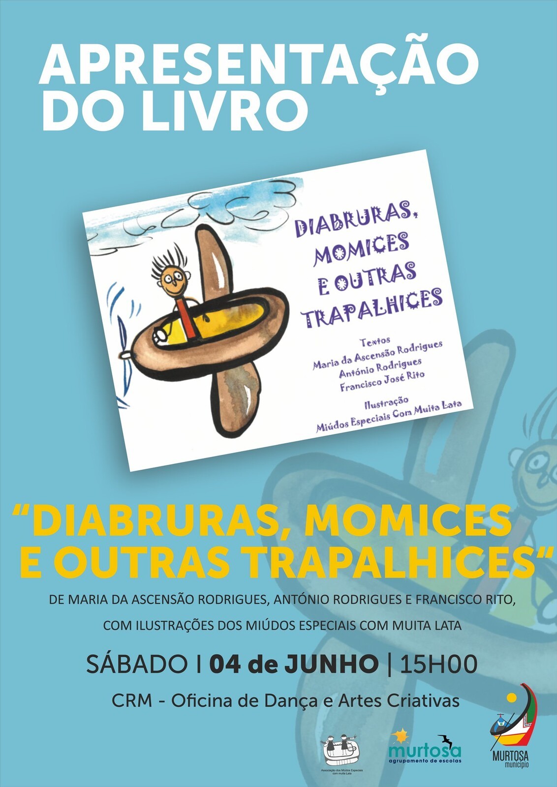 O CRM – Oficina de Dança e Artes Criativas recebe, no sábado, dia 4 de junho, pelas 15H00, a apresentação do livro “Diabruras, Momices e Outras Trapalhices”, que resulta da parceria criativa entre os autores Murtoseiros Maria da Ascensão Rodrigues, António Rodrigues e Francisco Rito e os alunos que frequentam o CAA – Valência de Autismo do Agrupamento de Escolas da Murtosa.