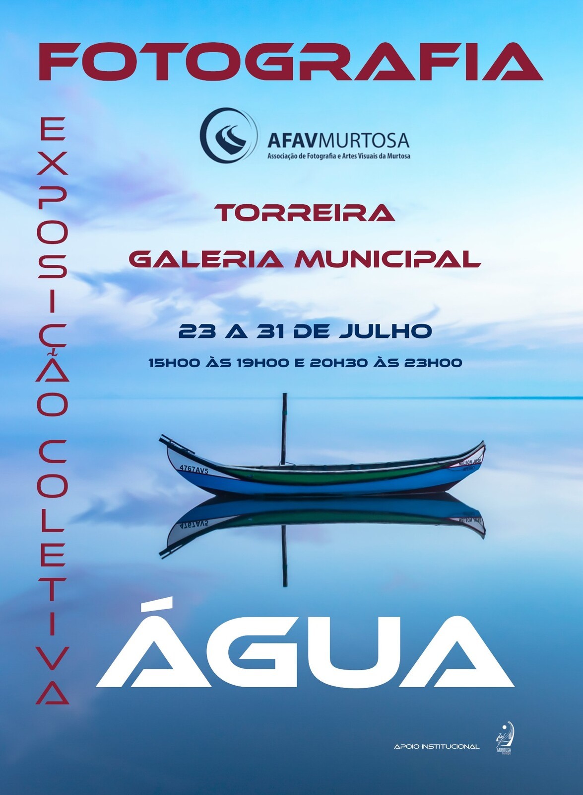 A Galeria Municipal da Torreira, recebe, de 23 a 31 de julho, a exposição coletiva de fotografia “Água”, organizada pela AFAVM - Associação de Fotografia e Artes Visuais da Murtosa, em parceria com o Município da Murtosa.