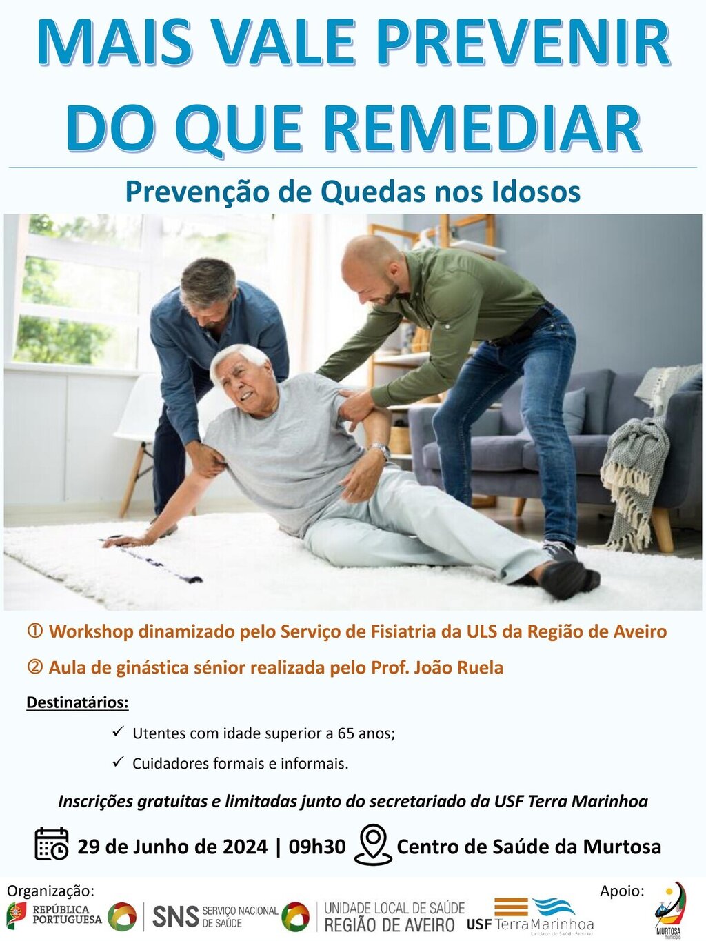 área de conteúdos (não partilhada)No âmbito da comemoração do Dia Mundial de Prevenção de Quedas, a USF Terra Marinhoa irá dinamizar uma Sessão de Educação para a Saúde com o objetivo de sensibilizar sobre a importância desta temática, tendo em conta as consequências físicas e psicológicas que podem ter na pessoa.