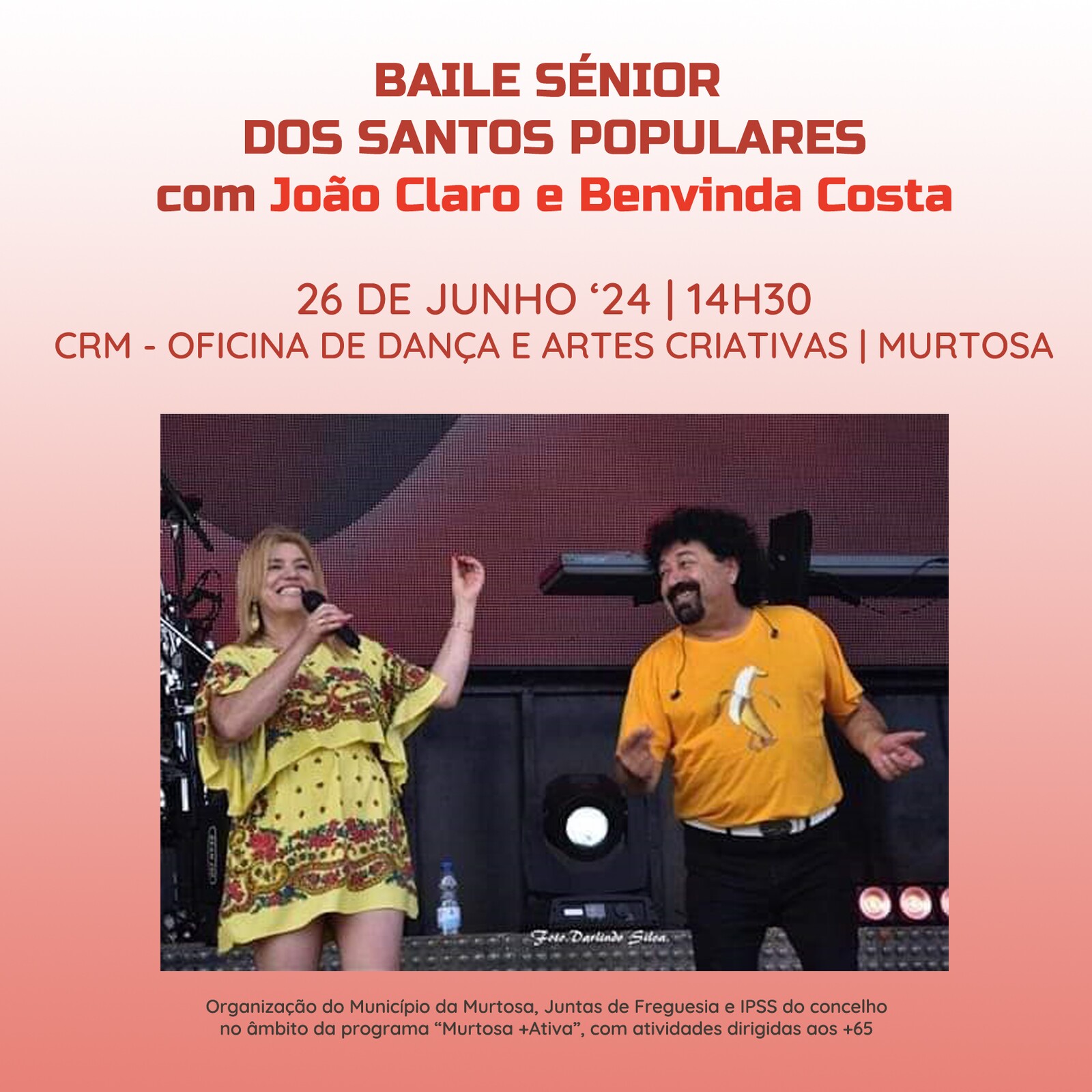 O CRM – Oficina de Dança e Artes Criativas, em Pardelhas, recebe, no próximo dia 26 de junho, pelas 14H30, um Baile Sénior dos Santos Populares, animado pelos artistas João Claro e Benvinda Costa.