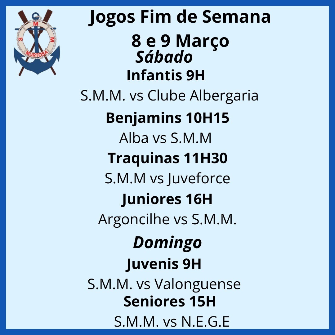 No próximo sábado, o Sport Marítimo Murtoense tem os seguinte jogos: