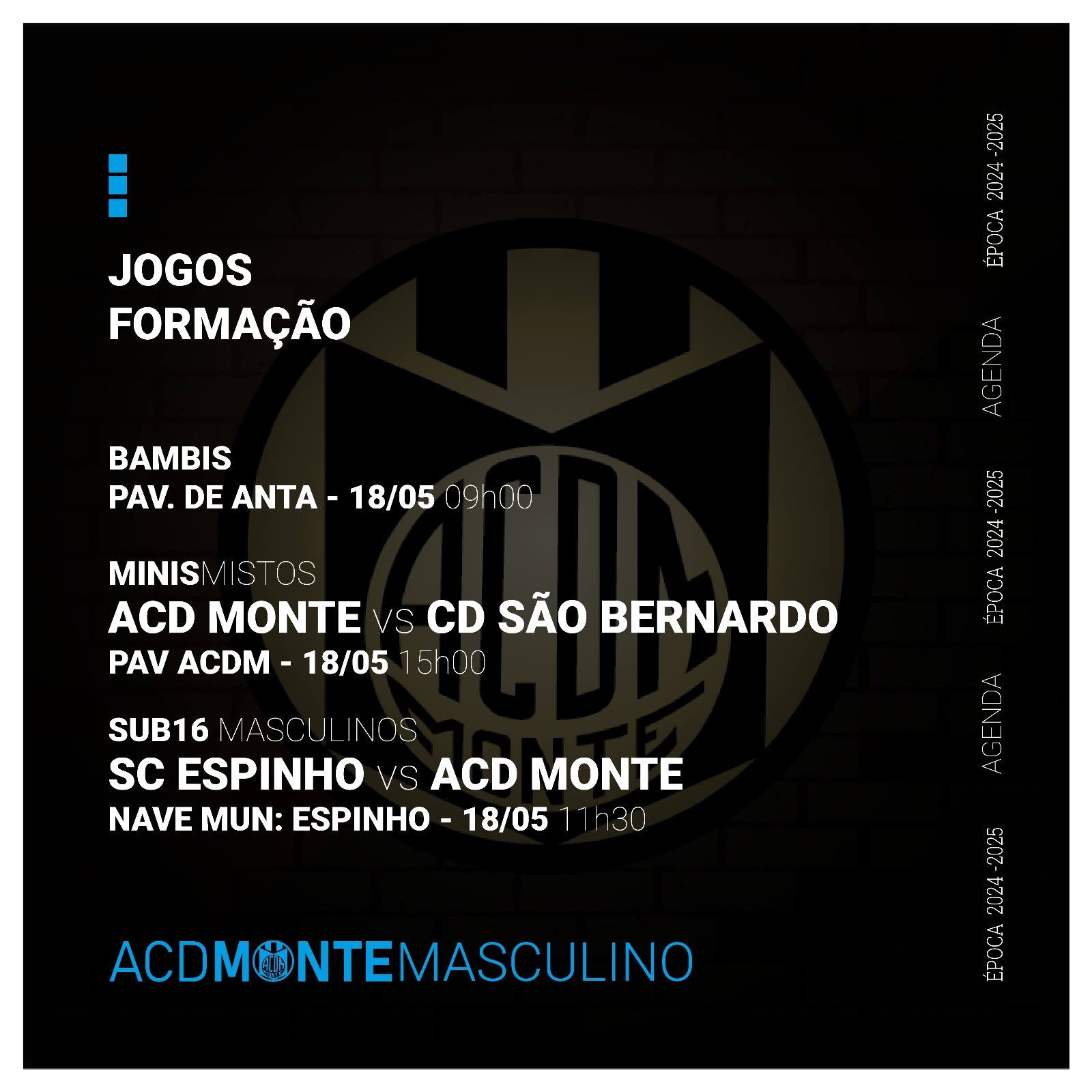 No próximo domoingo, dia 18 de maio, o ACDMonte tem o seguinte calendário de jogos masculinos:
