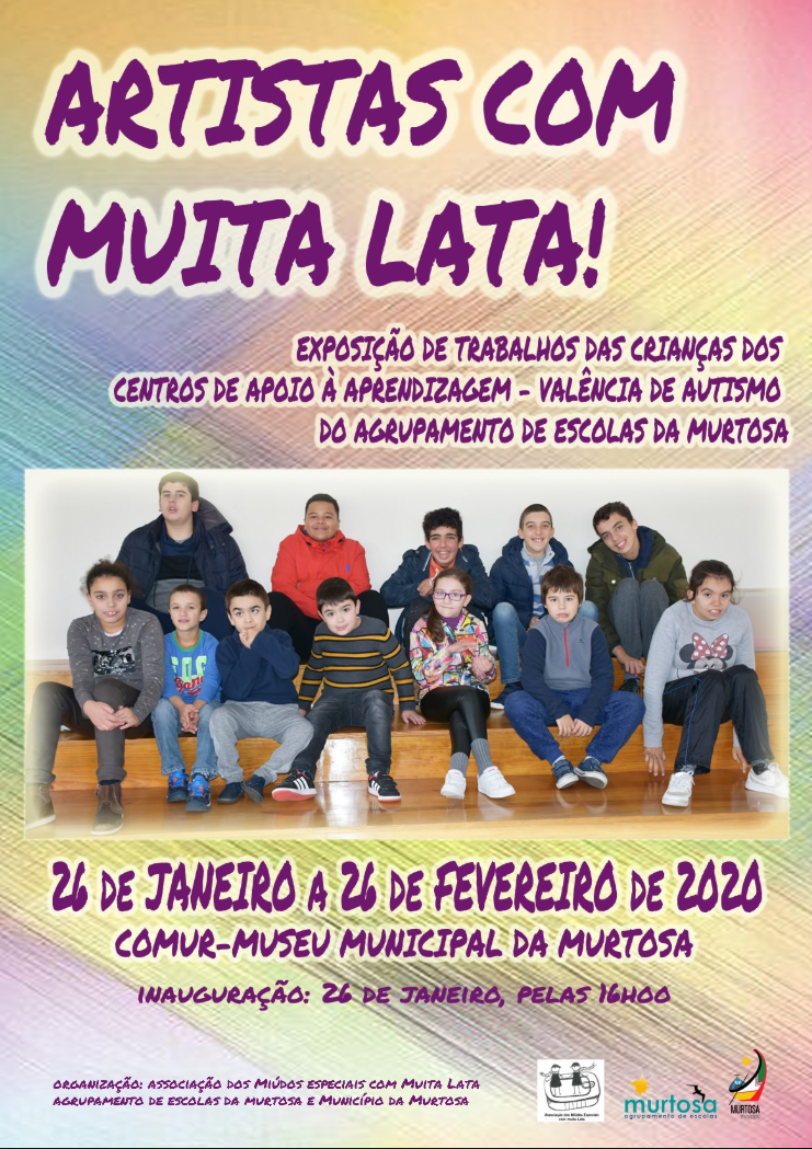 área de conteúdos (não partilhada)No próximo dia 26 de janeiro, pelas 16H00, terá lugar a inauguração da exposição “ARTISTAS COM MUITA LATA!”, que reúne trabalhos de expressão plásticas dos alunos dos Centros de Apoio à Aprendizagem – Valência de Autismo, do Agrupamento de Escolas da Murtosa.