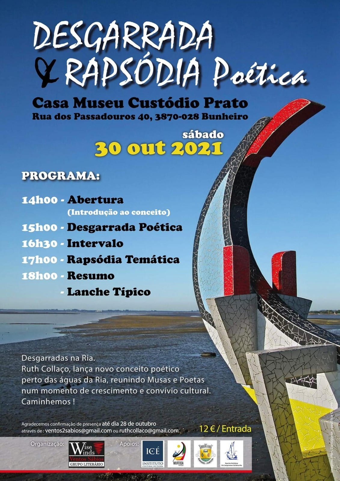 A Casa-Museu Custódio Prato recebe, no dia 30 de outubro de 2021, às 14H00, a iniciativa “Desgarrada & Rapsódia Poética”, organizada pelo Grupo Literário “Wise Winds”, com o apoio do Instituto Cultural de Évora, Município da Murtosa, Junta de Freguesia do Bunheiro e Rancho Folclórico “Os Camponeses da Beira-Ria”.