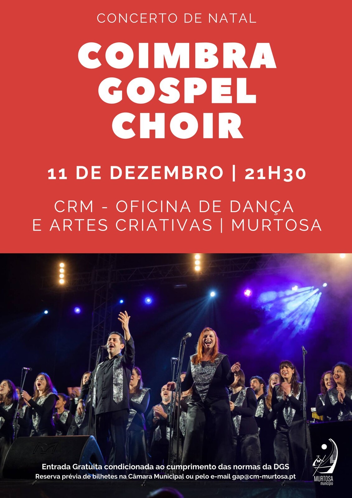 Integrado na programação de animação natalícia, promovida pelo Município da Murtosa, terá lugar, no sábado, dia 11 de dezembro, no CRM – Oficina de Dança e Artes Criativas, um concerto do “Coimbra Gospel Choir”.