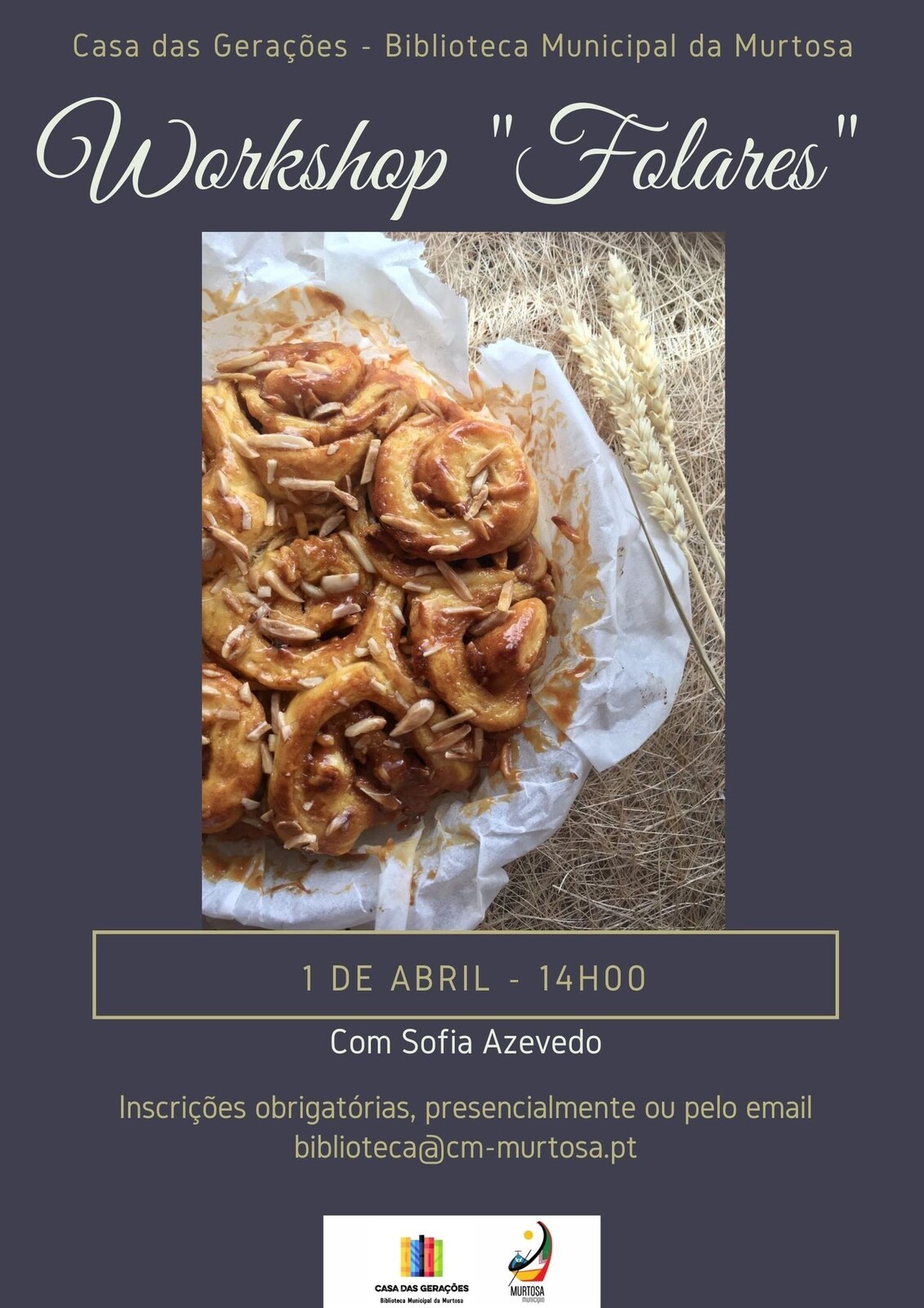 A Casa das Gerações-Biblioteca da Murtosa, vai proporcionar no próximo dia 1 de abril, pelas 14:00horas, um workshop de "Folares", que será dinamizado pela Sofia Azevedo.