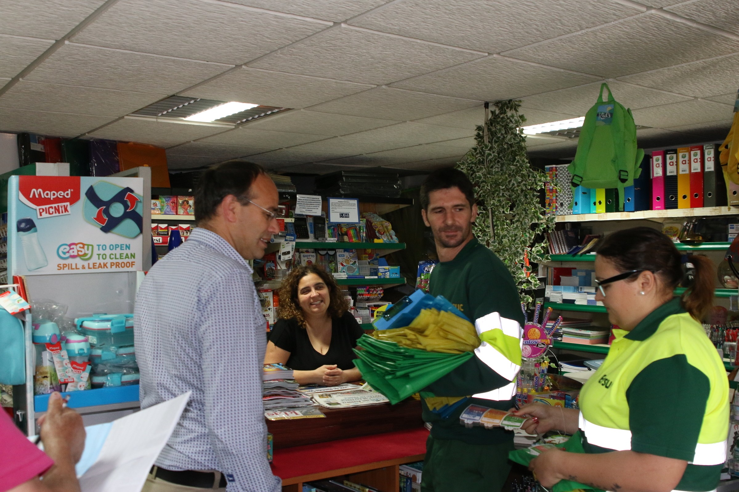 Tal como já tinha acontecido na ação de sensibilização junto dos comerciantes sobre este serviço, realizada em abril passado e em que foram explicadas as vantagens da adoção de comportamentos ambientalmente corretos, no âmbito da valorização dos resíduos urbanos, Duarte Novo e Jorge Pato, respetivamente Presidente e Vice-Presidente da Câmara Municipal, acompanharam as visitas aos estabelecimentos comerciais aderentes, juntamente com técnicos do Município e da empresa ERSUC.