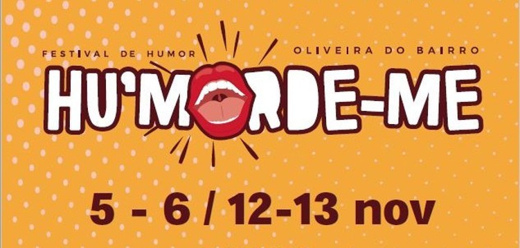 área de conteúdos (não partilhada)O Hu’morde-me – Festival de Humor de Oliveira do Bairro regressa ao auditório do Quartel das Artes para a sua 4.ª edição, entre 5 e 13 de novembro, levando ao palco Quim Roscas e Zeca Estacionâncio, Ana Garcia Martins (A Pipoca Mais Doce) e David Cristina, Dário Guerreiro, Luana do Bem, Guilherme Fonseca e Manuel Cardoso.