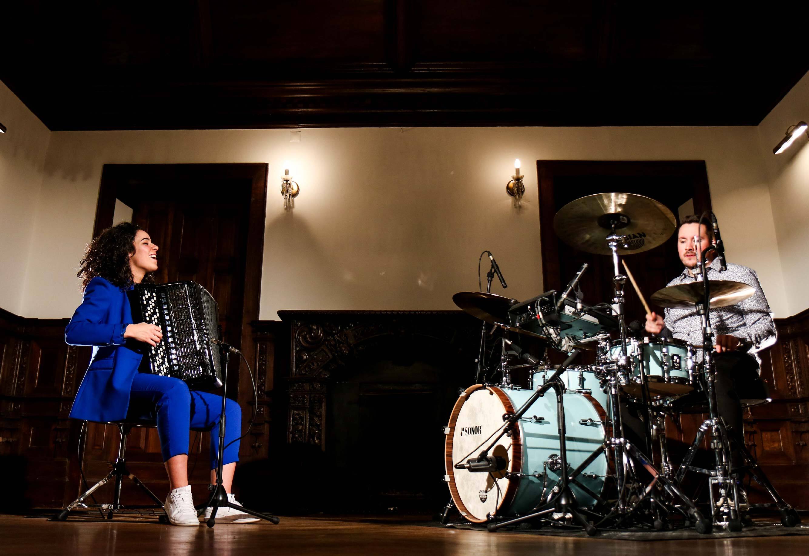 Entre as curvas dos botões e as dos timbalões, as polirritmias criam rimas. Ora é o fole que percute, ora é o bombo que dispara harmonias. É o diálogo ou o conflito rítmico entre os dois, com a música eletrónica a mediar.