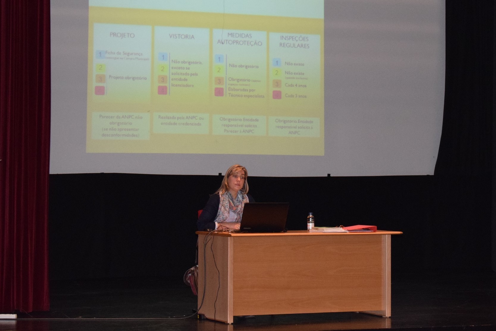 Após um enquadramento teórico, o público presente foi sensibilizado para a necessidade de se implementarem projetos de segurança contra incêndios, bem como medidas de autoproteção em edifícios.