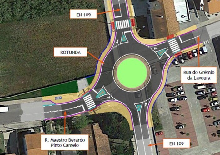 área de conteúdos (não partilhada)Iniciou-se, no dia 13 de março, a construção da rotunda no km 68,960 da EN 109, na interceção com a Rua Maestro Berardo Pinto Camelo e a Rua Grémio da Lavoura.