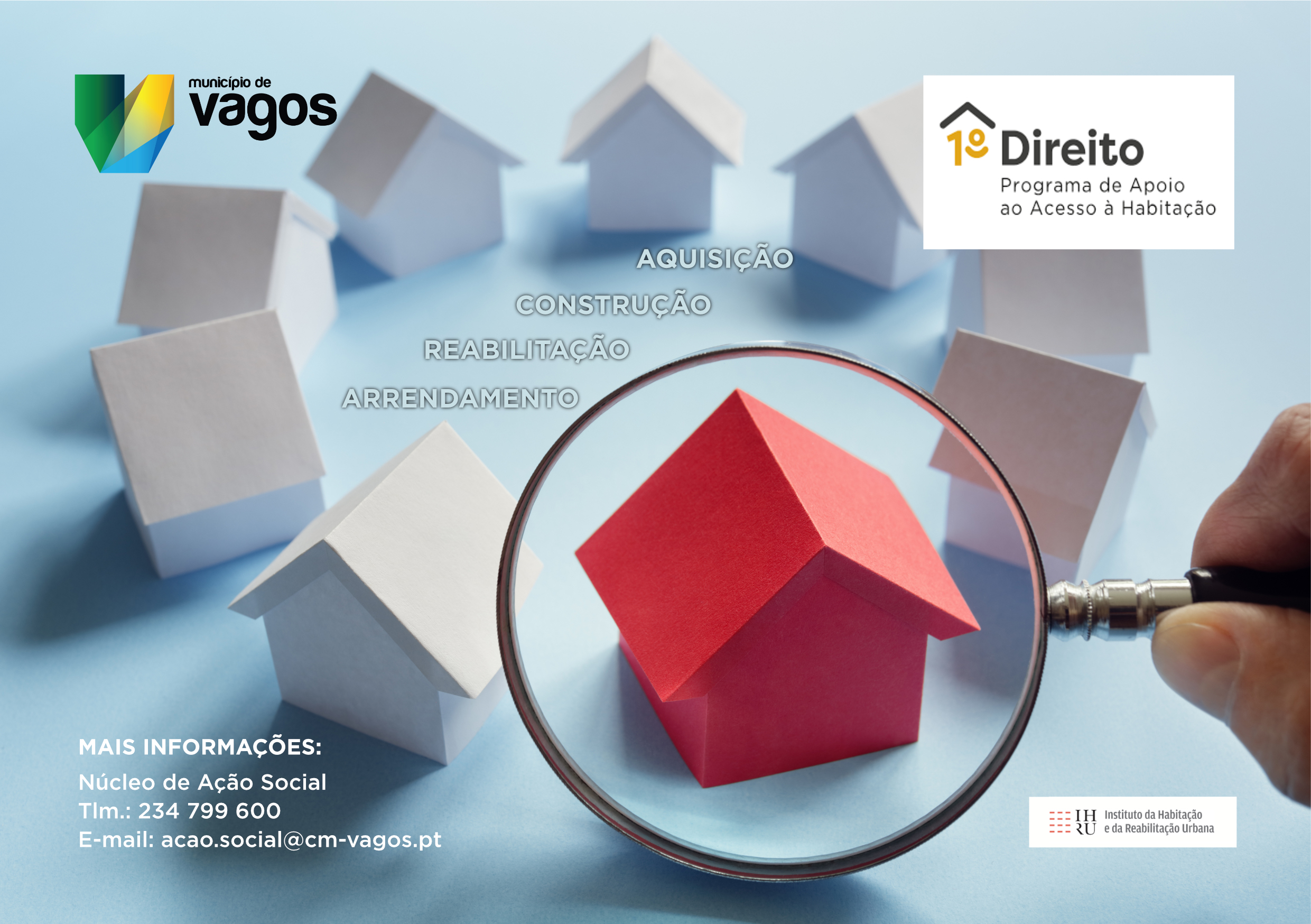 Neste sentido, a Câmara Municipal de Vagos está a elaborar a sua Estratégia Local de Habitação, de modo a poderem - Município, Juntas de Freguesias, IPSS´s ou, ainda, agregados familiares - apresentar uma candidatura ao Programa 1º Direito.