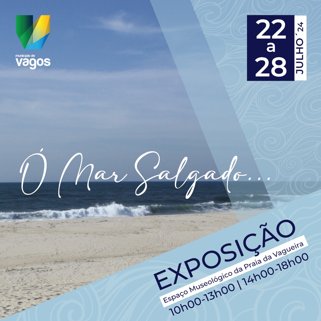 área de conteúdos (não partilhada)Inserida na programação do “Animar o Verão 2024” estará patente, de 22 a 28 de julho, das 10h00 às 13h00 e das 14h00 às 18h00, no Espaço Museológico da Praia da Vagueira, a exposição ambiental “Ó Mar Salgado...”.