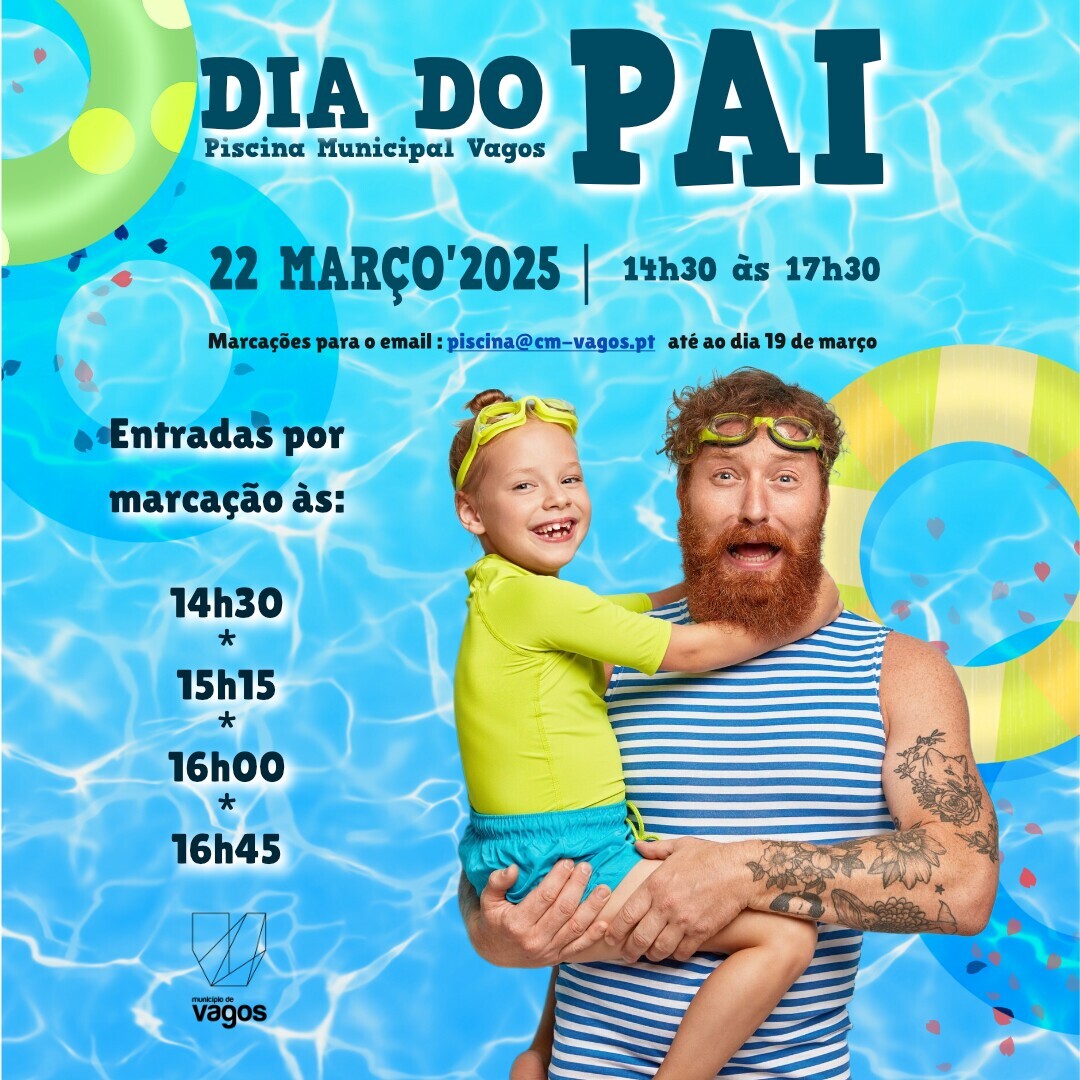 O Dia do Pai será assinalado, mais um ano, na Piscina Municipal de Vagos, com um dia de atividades em regime de utilização livre, aberto à comunidade, para todos os pais que pretendam acompanhar os(as) seus(as) filhos(as). As atividades decorrem no dia 22 de março, na Piscina de Vagos, das 14h30 às 17h30.