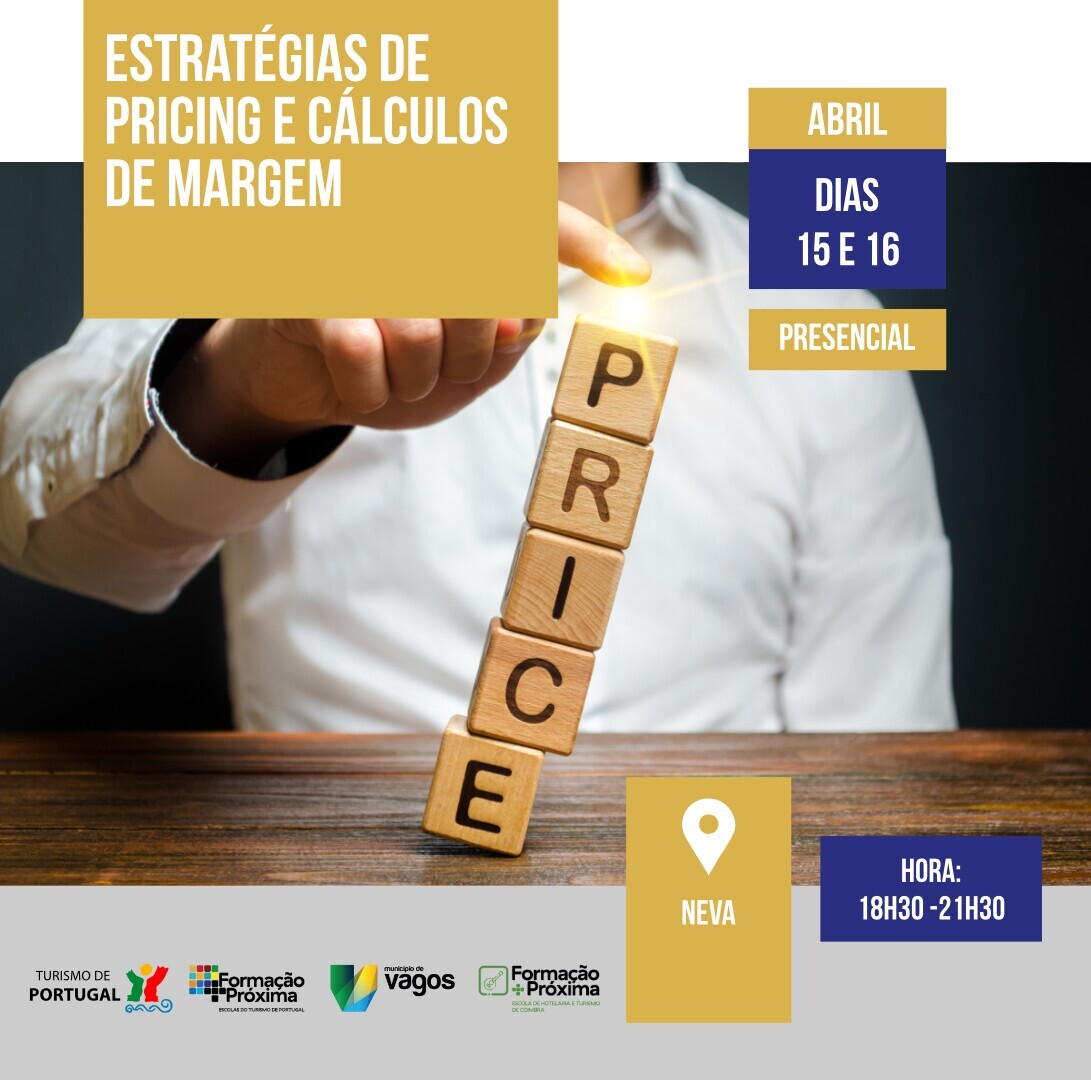 No âmbito da formação + Próxima, realiza-se, nos dias 15 e 16 de abril de 2025, entre as 18h30 e as 21h30, a formação gratuita “Estratégias de Pricing e Cálculo de Margens" que tem como objetivos compreender a importância das estratégias de pricing no setor turístico, aprender a calcular custos e margens para uma precificação eficiente, explorar ferramentas e métodos de pricing. Pricing estático Vs dinâmico e a nalisar casos práticos e aplicações no setor.