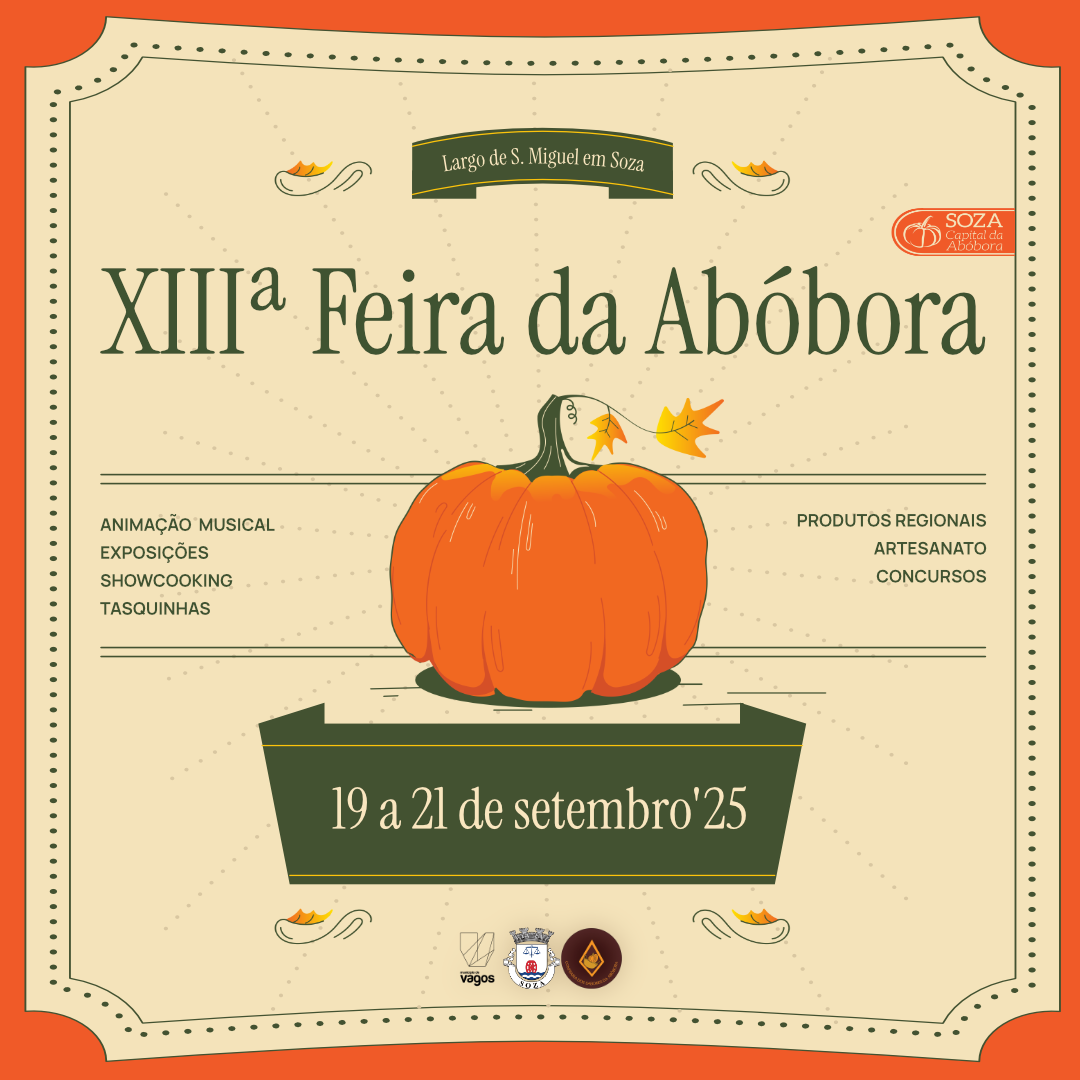 A freguesia de Soza volta a ser palco de uma das tradições mais acarinhadas da região: a XIII Feira da Abóbora, que decorre nos dias 19, 20 e 21 de setembro, reunindo música, gastronomia, concursos e atividades para toda a família.