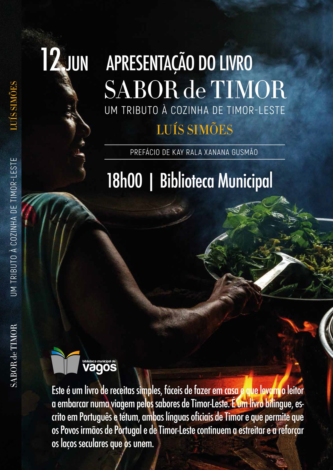 área de conteúdos (não partilhada)No dia 12 de junho, pelas 18h00, a Biblioteca Municipal de Vagos recebe a apresentação do Livro “Sabor de Timor”, um tributo à cozinha de Timor-Leste, de Luís Simões, natural de Ponte de Vagos.