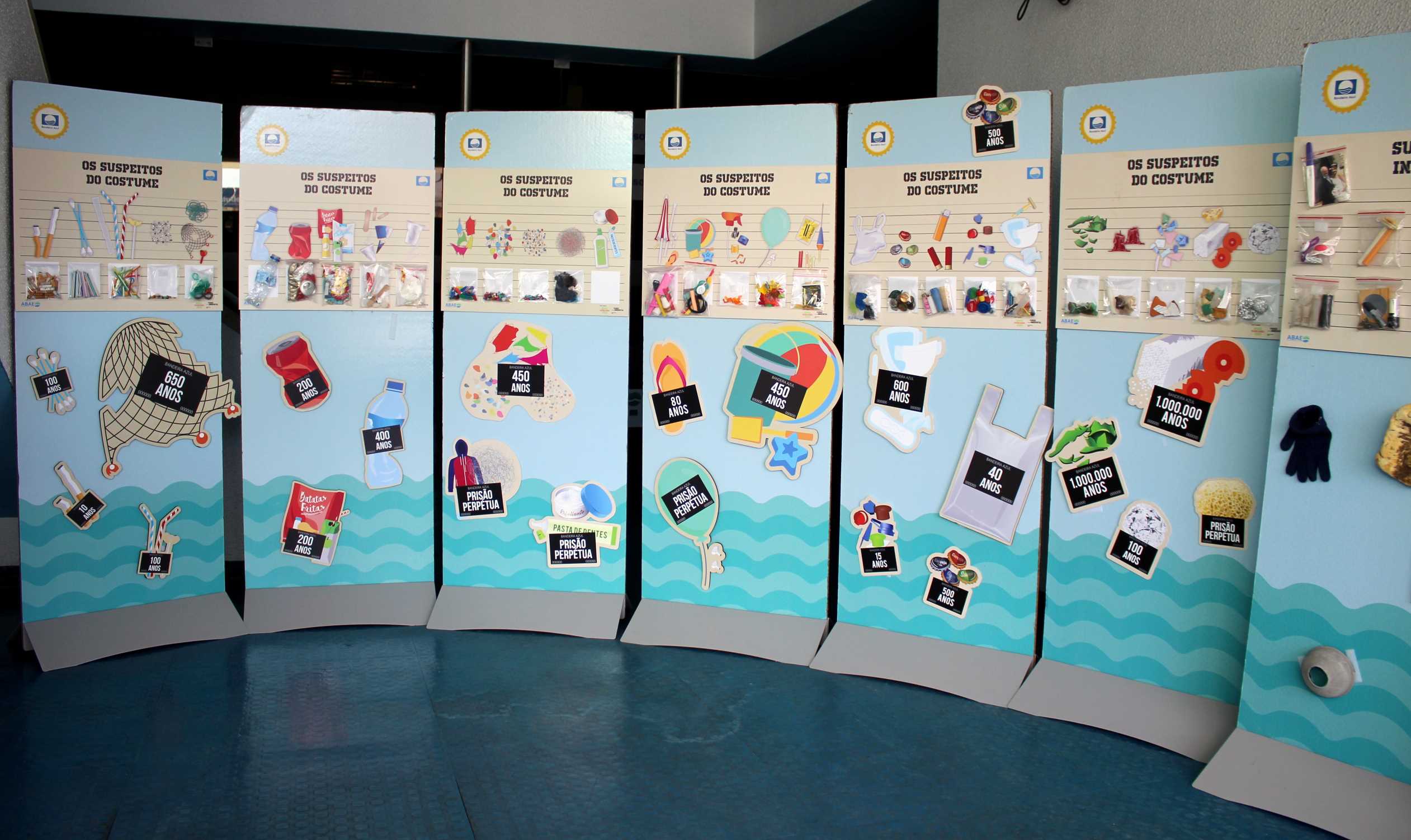 Trata-se de uma exposição itinerante, da Associação da Bandeira Azul, sobre os resíduos que aparecem nas nossas praias.
