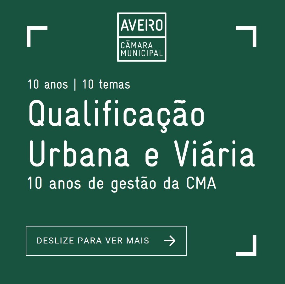 Ao longo da última década, foram realizadas inúmeras obras por todo o Município, sempre com o objetivo de melhorar a qualidade, a segurança e o conforto do espaço público, capacitando a Cidade e o Município de Aveiro de infraestruturas capazes de responder ao crescimento populacional e turístico, ao mesmo que reforçámos a aposta na sustentabilidade, nos modos suaves de transporte e na prioridade ao peão e aos espaços de estar e de lazer.