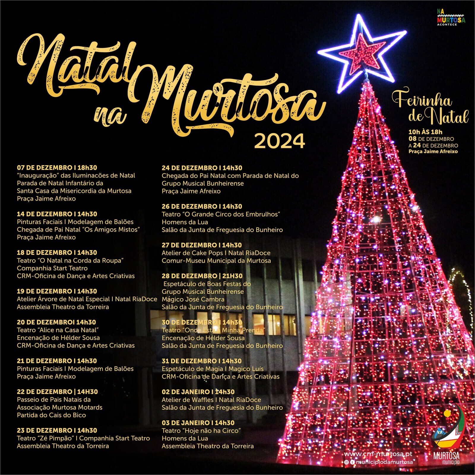Ainda no âmbito da iniciativa “Natal na Murtosa”, a Praça Jaime Afreixo receberá, de 8 a 24 de dezembro, uma Feirinha de Natal e a chegada oficial do Pai Natal, que acontecerá no dia 24, às 14H30.
