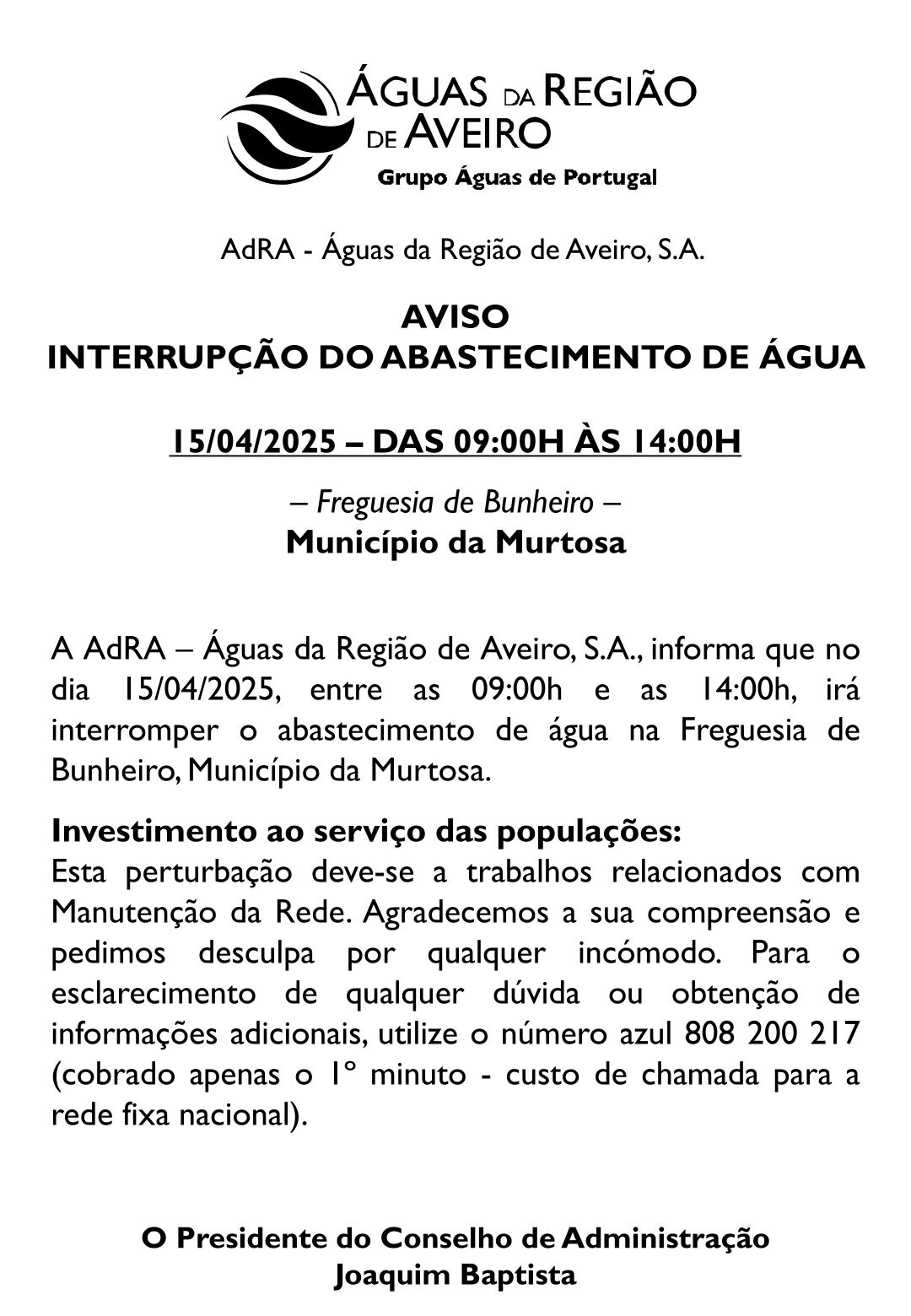 área de breadcrumb (partilhada) Início Comunicação Notícias ADRA - AVISO INTERRUPÇÃO ABASTECIMENTO DE ÁGUA Noticia não encontradaárea de conteúdos (não partilhada) Neste momento não existem notícias para apresentar. área de menu central (partilhada) Conteúdo atualizado em15 de dezembro de 2021às 17:31