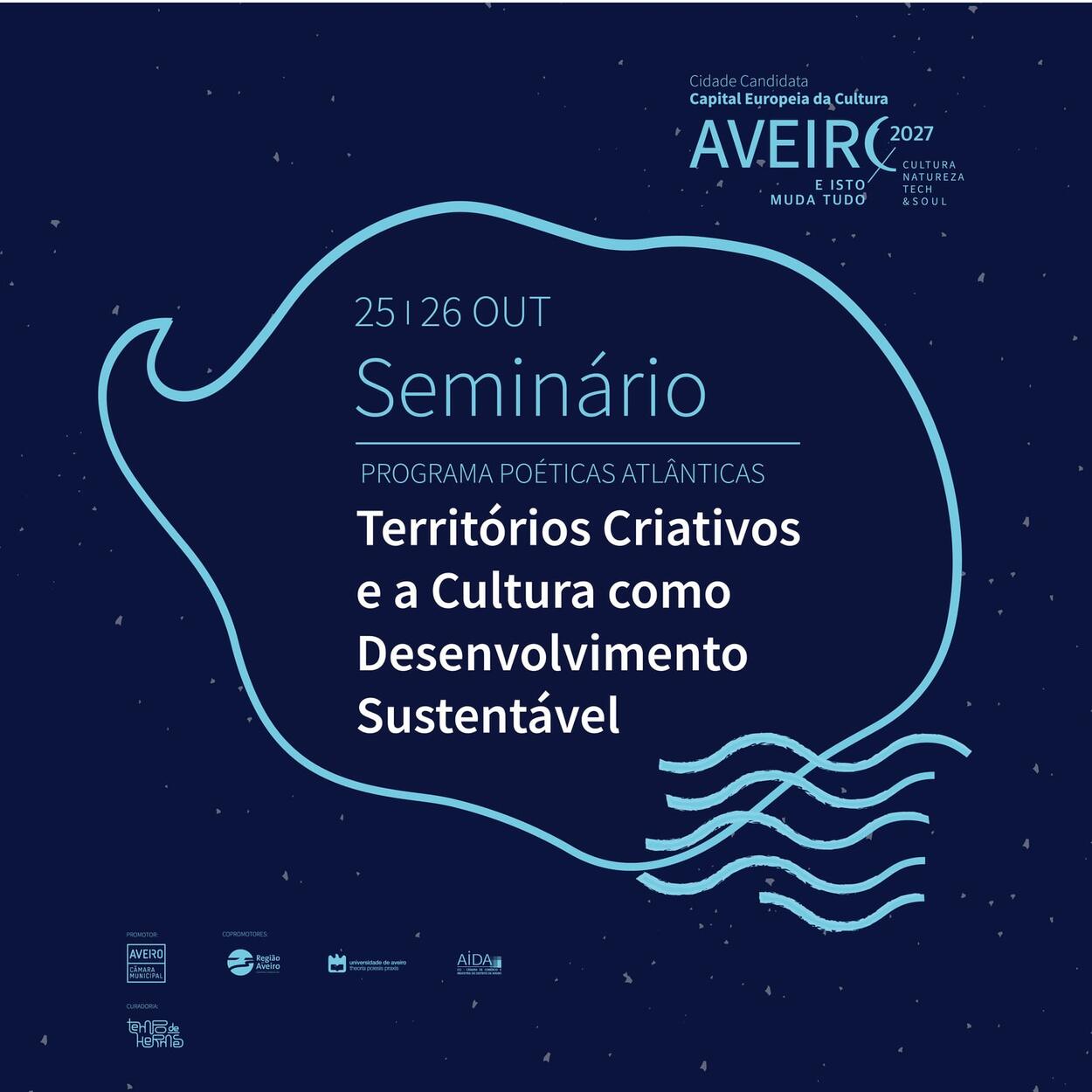 Nos passados dias 25 e 26 de outubro o projeto Aveiro 2027 – Cidade Candidata a Capital Europeia da cultura promoveu um fórum dedicado à integração territorial da cultura, tendo como título “Poéticas Atlânticas – Seminário Territórios Criativos” e a “Cultura Como Desenvolvimento Sustentável”. Este encontro juntou especialistas de várias áreas e teve uma dimensão presencial no dia 25, na Universidade de Aveiro e em formato online nos dois dias.